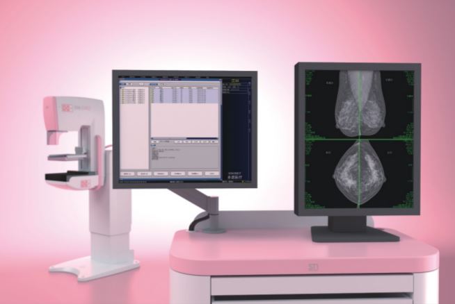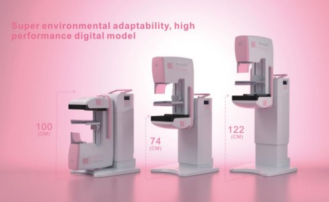 Full field digital mammography using breast dedicated a-Si detector with an elegant appearance, superior environmental adaptability, suitable for both indoor and vehicle use.