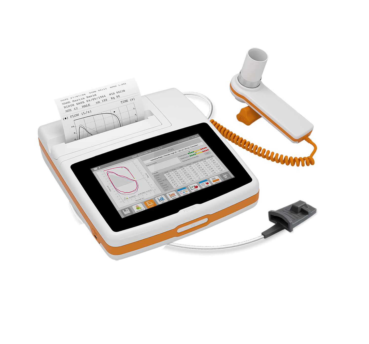 - Perfect suite in Hospitals and Asthma camps, with its fast and silent built–in thermal printer with customizable printout format.