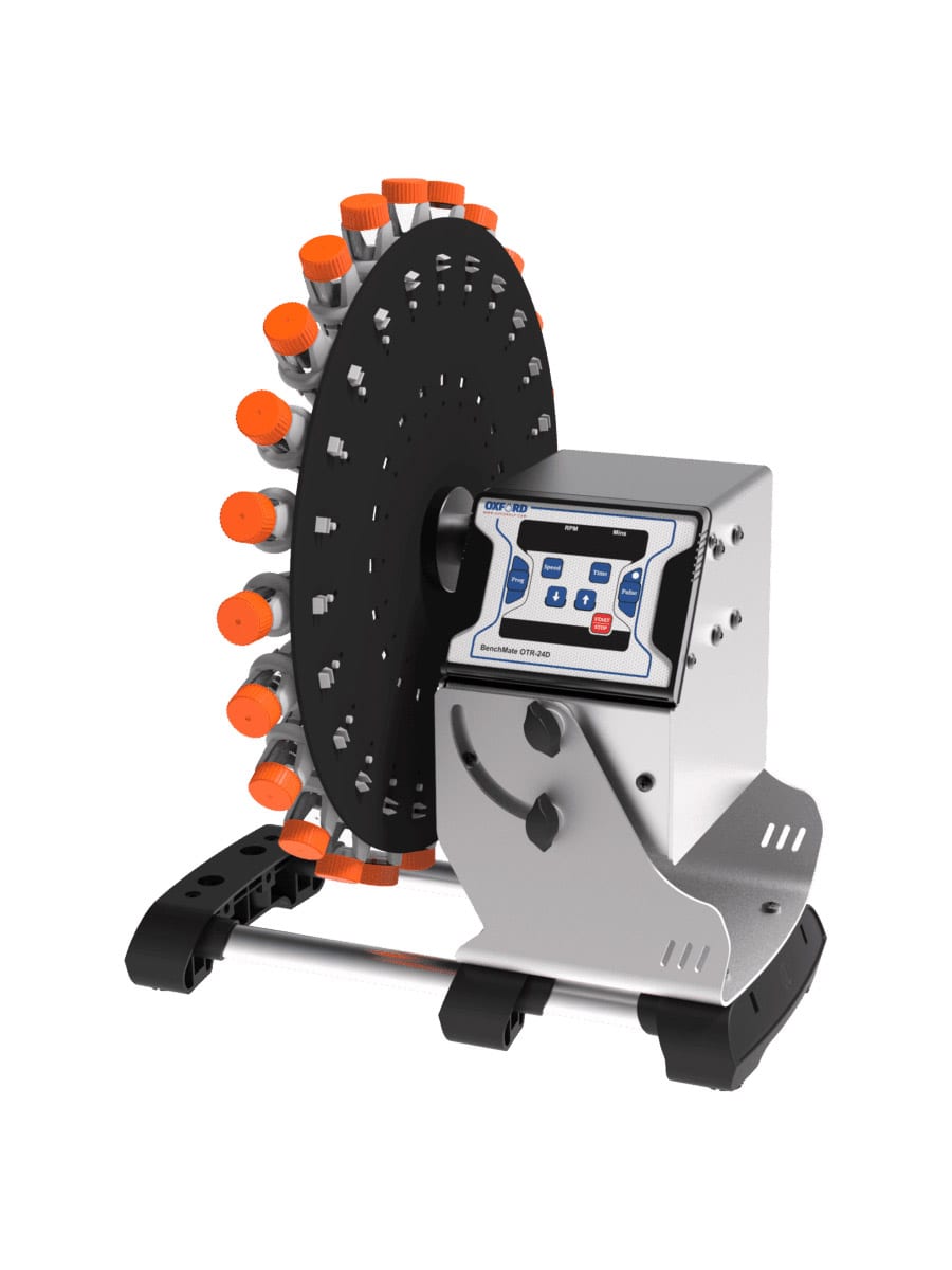 The Oxford Lab Products BenchMate Digital Tube Rotator is ideal for a variety of laboratory applications that require the gentle mixing of biological samples, such as the mixing of blood samples in blood collection tubes to prevent coagulation, immunoprecipitation, latex agglutination assays and preparation of homogenous dispersions (the mixing of powdered/solid and liquid samples).
