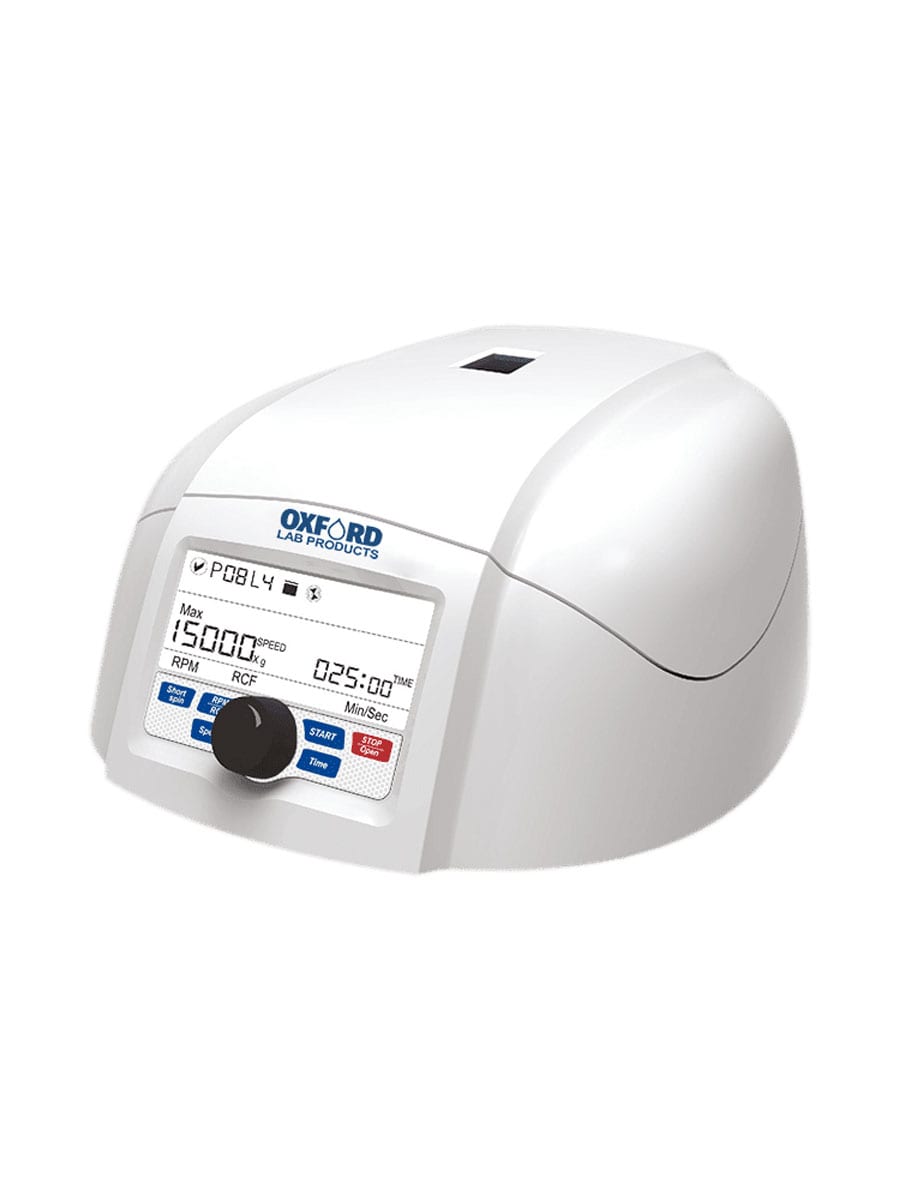 Oxford Lab Products BenchMate C12V High Speed Microcentrifuge simplifies centrifugation while maintaining powerful capabilities. This compact and easy to use high speed microcentrifuge comes with an intuitive and simple interface for making quick and convenient setting adjustments. All centrifugation protocols can be performed up to the maximum speed of 15,000 rpm (15,595 x g) with this high speed microcentrifuge. The C12V High Speed Microcentrifuge has the ability to simultaneously store up to 99 programs, with 4 lines per program. You can also store, view and run all of your programs from a computer through the USB port.