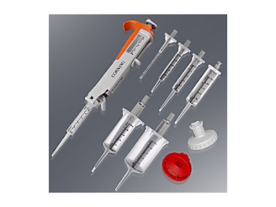 For a smooth start, the Corning® Step-R™ Repeating Pipettor Starter Pack is packaged with the Step-R Repeating Pipettor, 2 syringe tip adapters (25 mL and 50 mL), and 24 non-sterile syringe tips samples (0.05 mL, 2.5 mL, 5 mL, 12.5 mL, 25 mL, and 50 mL).