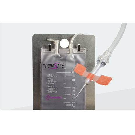 - Graduated 500ml therapeutic phlebotomy bag with 17G x 1′ safety needle, for use without a digital scale.