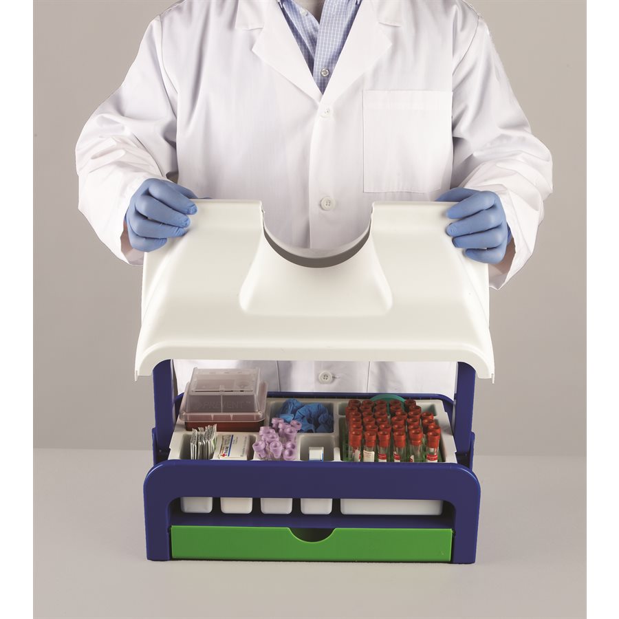 Lightweight, roomy and easy-to-clean Droplet™ Blood Collection Tray. Keeping a clean and organized tray has never been easier. Wash the ABS tray as needed, and replace the insert periodically for a fresh start. Tray inserts come in two configurations and include an extra-deep compartment for a sharps container.