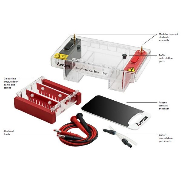 Axygen horizontal gel boxes are high quality, full featured units designed for exceptional durability and efficiency. The gel boxes feature leak-free external gel casting, which allows you to cast
